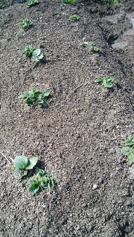 あと、先週サトイモ、ショウガを収穫した畝の後にイチゴの宝交早生を10ポット植えました。露地向き品種です。