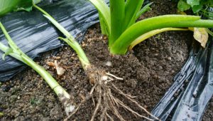 4月末に仮植えした下仁田ネギが大きくなり窮屈になっているので、折らないように注意しながら1本づつに分けます。